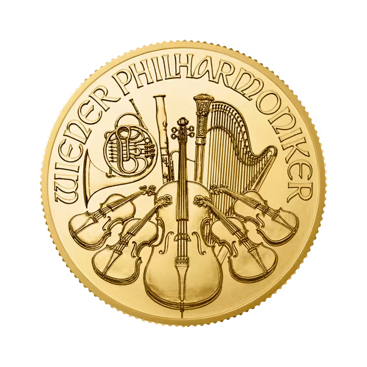 De Oostenrijkse gouden Philharmoniker munt is één van de meest bekende gouden munten die in Europa wordt geslagen. Deze munten zijn in 99,99% puur goud geslagen en wegen 15,55 gram. De 1/2 troy ounce gouden Philharmoniker munten hebben een nominale waarde van 50 euro en is daarmee de enige gouden "Bullion munt" met de nominale waarde gerelateerd aan de euro.