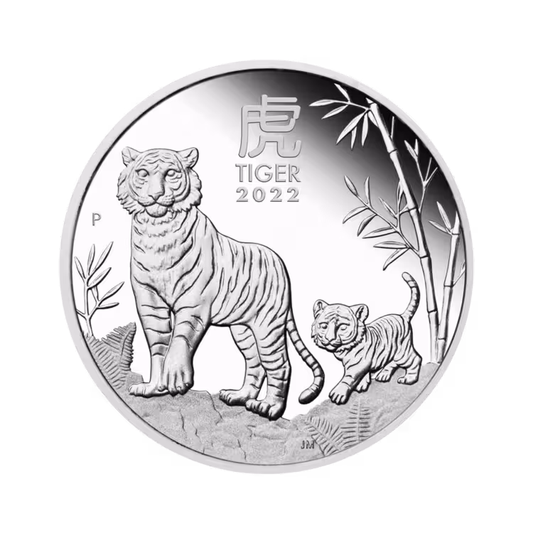 The Perth Mint heeft de 2022 Lunar munt gepresenteerd. Het is de Lunar Tijger munt. De Lunar munten zijn gebaseerd op de Chinese dierenriem, die gebaseerd is op 12 dieren. 2022 is het jaar van de tijger en daarom heeft de Lunar munt het thema “jaar van de tijger” gekregen. De zilveren Lunar Tijger munten zijn geslagen in verschillende gewichten. Ook zijn er munten van Proof kwaliteit, waaronder deze. Deze Lunar Tijger Proof munt is geslagen in ½ troy ounce puur zilver (99,99%). Zoals de voorgaande jaren zijn de munten van uitstekende kwaliteit en hebben ze een prachtige uitstraling. Ook heeft de munt een nominale waarde van $0,50 aangezien deze als wettig betaalmiddel dient in Australië. De Lunar munten zijn wereldwijd erg bekend en gewild onder verzamelaars.