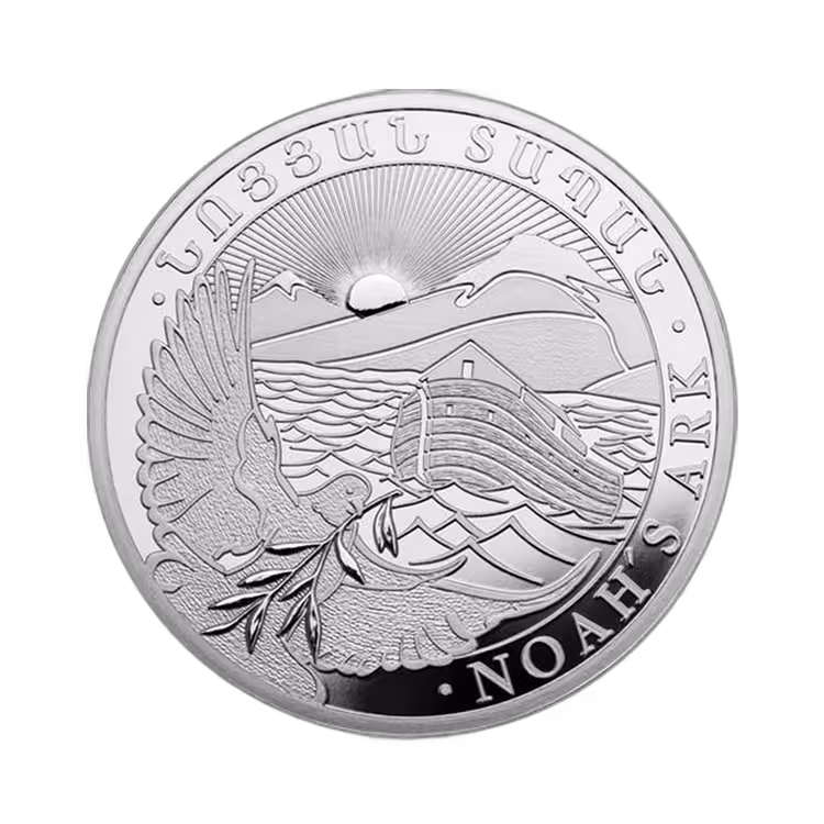 De 1/4 troy ounce zilveren Noah’s Ark munt is een prachtig uitgevoerde beleggingsmunt uit Armenië, geslagen in puur zilver (999/1000). Het ontwerp toont de beroemde ark van Noach met de duif en de Ararat-berg op de achtergrond, een symbool van hoop en nieuw begin. Dankzij de kleinere gewichtseenheid is deze munt bijzonder geschikt voor gespreide investeringen of als cadeau. Uitgegeven door de Central Bank of Armenia, combineert de Noah’s Ark munt een indrukwekkend design met betrouwbare zilverwaarde en wereldwijde verhandelbaarheid.