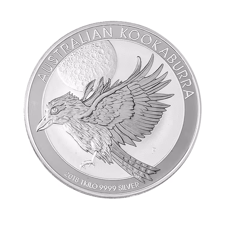 Deze 1 kilo zilveren Kookaburra munt is in 2018 geslagen door The Perth Mint. De munt heeft een diameter van 100,6 mm, een dikte van 14,6 mm en 1 kilogram aan 99,99% puur zilver.