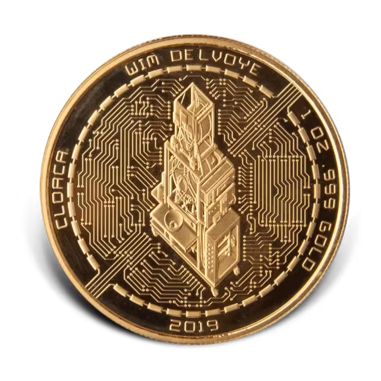 Deze exclusieve 1 troy ounce gouden munt is gewijd aan de internationaal gerenommeerde Belgische kunstenaar Wim Delvoye. De munt is geslagen in proofkwaliteit door de Royal Dutch Mint en uitgegeven namens de Republic of Fiji met een nominale waarde van 10 dollars.