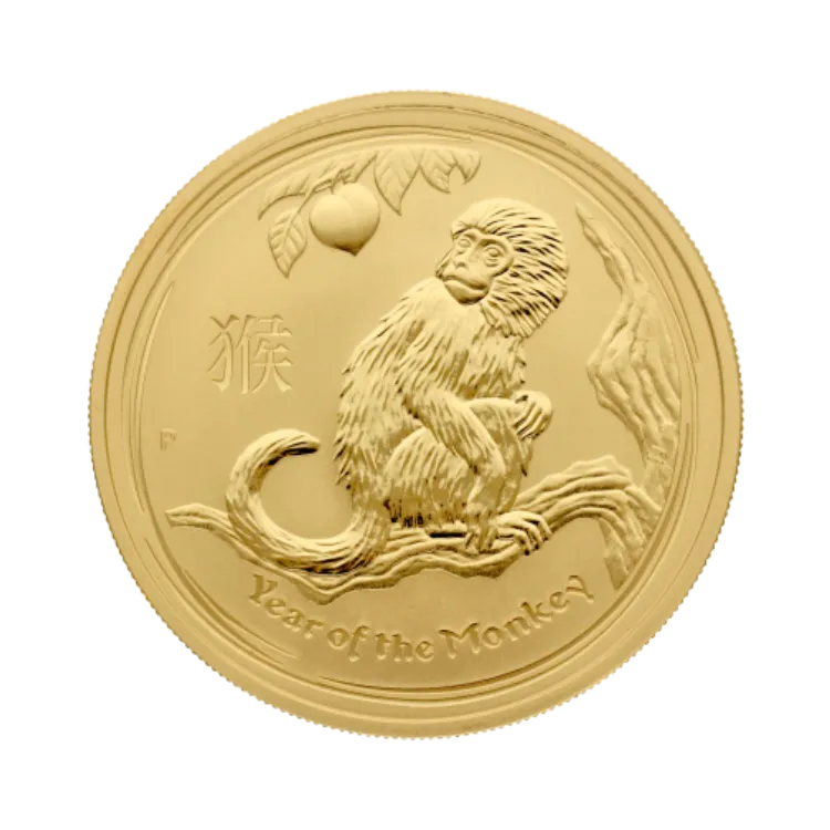 2016 gouden Lunar munt van 1 troy ounce - het jaar van de aap. Deze munt bevat 99,99% puur goud.