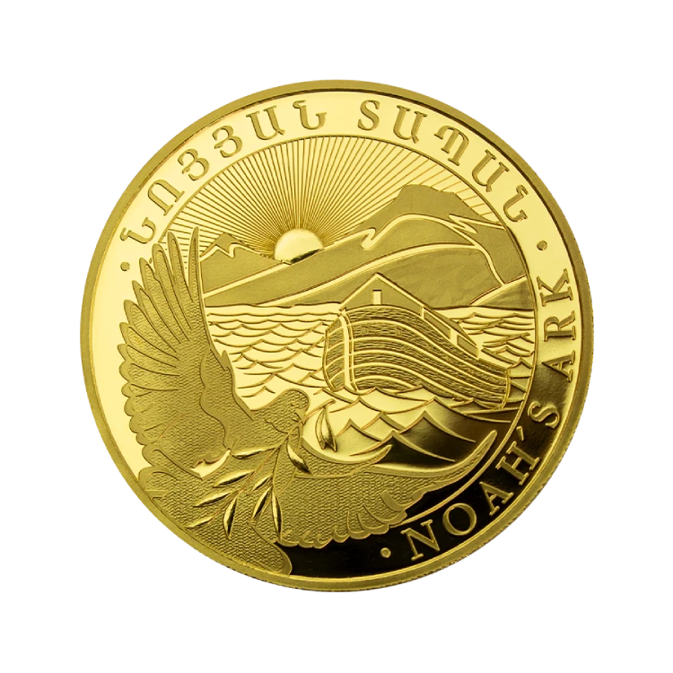 De 1 troy ounce gouden Noah’s Ark munt is een bijzondere beleggingsmunt afkomstig uit Armenië. Deze munt wordt geslagen uit 99,99% puur goud en maakt deel uit van de officiële Noah’s Ark-serie, uitgegeven door de Centrale Bank van Armenië.