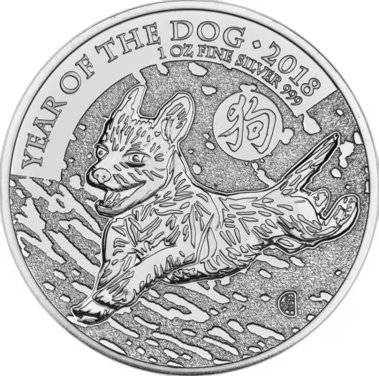Dit ontwerp is afkomstig van de twaalf dierensymbolen van de Chinese sterrenbeelden. Wuon-Gean Ho heeft het Britse Lunar Dog munt ontworpen om te vieren dat het jaar 2018 het “Jaar van de Hond” is. Deze munt is het vijfde ontwerp in The Royal Mint’s Shengxiào collectie en is geslagen in puur zilver (99,9%).