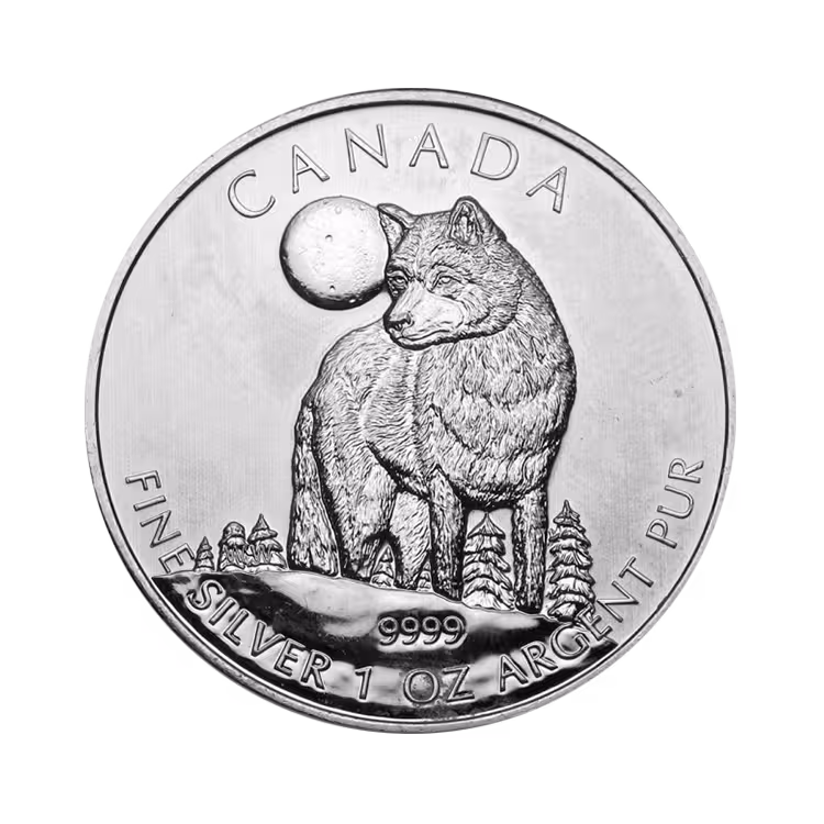 De 1 troy ounce zilveren Wolf munt heeft een gewicht van 1 troy ounce (31,103 gram) puur zilver (99,99%) en was de eerste uitgave van de Canadian Wildlife serie. Totaal heeft deze serie 6 munten, iedere munt met weer een ander belangrijk Canadees wild dier hierop. Op deze munt staat de timberwolf centraal, een van de grootste wolfsoorten met een gewicht tussen de 45 - 61 kilogram.