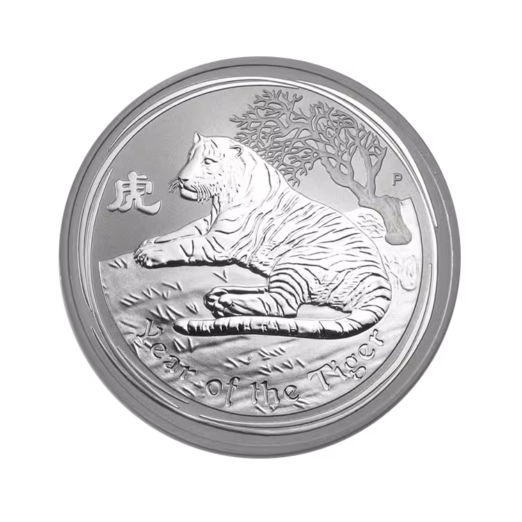 De 1 troy ounce zilveren Lunar II Year of the Tiger munt bevat 31,103 gram aan 99,9% puur zilver en onderdeel van de Lunar II serie. Deze Lunar II serie wordt sinds 2008 uitgegeven en toont jaarlijks een niet ontwerp gerelateerd aan één van de 12 dieren van de Chinese dierenriem. De oplage is beperkt tot 300.000 stuks wereldwijd.