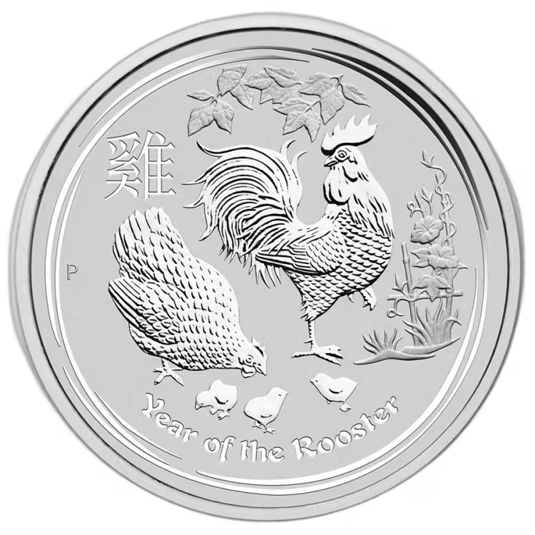 2017 - 10 Troy ounce zilveren Lunar munten - het jaar van de haan. Deze munten bevatten maar liefst 311,03 gram fijn zilver. Deze munten worden geslagen door de Perth Mint uit Australië.