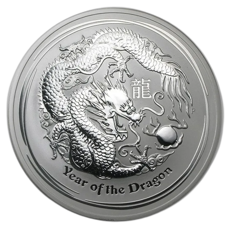 De 10 troy ounce zilveren Lunar munt Year of the Dragon 2012 is onderdeel van de populaire Lunar II-serie van de Perth Mint. De munt bevat 99,9% puur zilver en toont het indrukwekkende ontwerp van de Chinese draak – een symbool van kracht, voorspoed en bescherming. Met een gewicht van ruim 311 gram is dit een indrukwekkend verzamelstuk én een waardevolle belegging in edelmetaal.