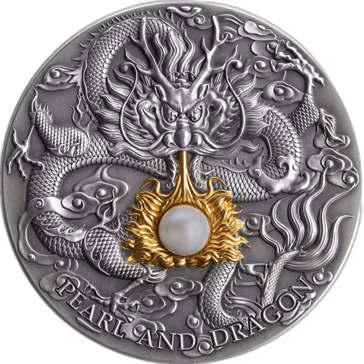 2 troy ounce zilveren munt Parel en Draak - antieke afwerking 2022