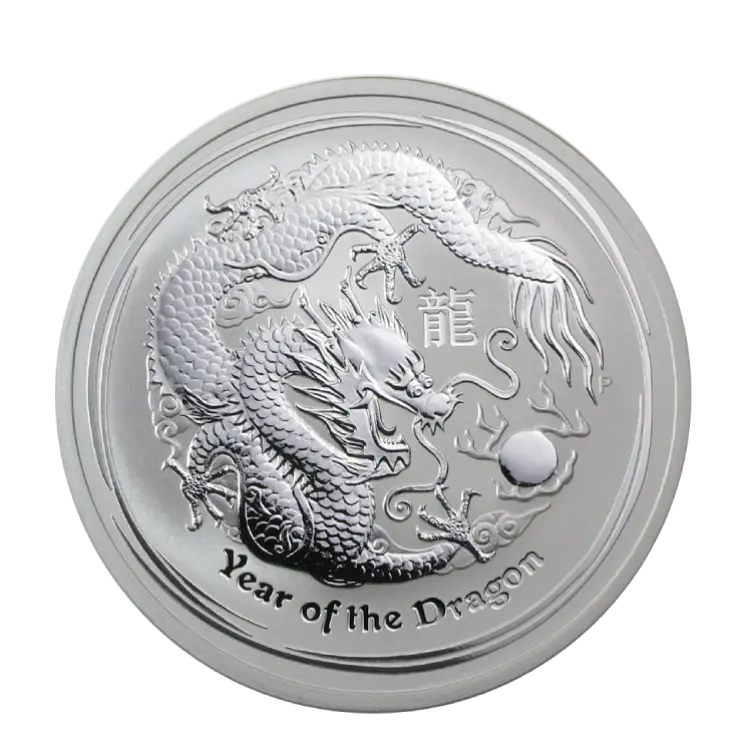 Deze 2 troy ounce zilveren Year of the Dragon munt is afkomstig uit de wereldwijd bekende Lunar serie.