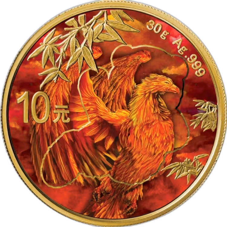 Deze 30 gram Panda - Rising Phoenix lijkt op het eerste oog gemaakt van goud. Echter is deze munt geslagen in 99,9% puur zilver. Door de mooie gouden afwerking, heeft u een unieke verzamelmunt.