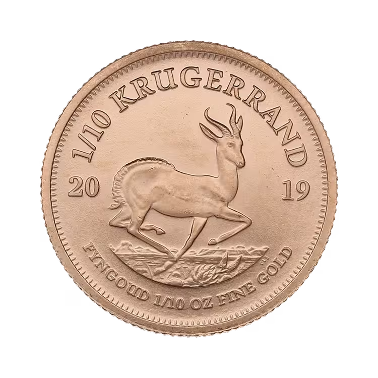 The Krugerrand is produced by The South African Mint. With over 120 years of experience in minting coins, they have been producing the 1/10 troy ounce gold Krugerrand for over 43 years. The Krugerrand coin has legal tender status and this coin was issued specifically to be traded for its gold value. Krugerrand gold coins are readily tradable worldwide.