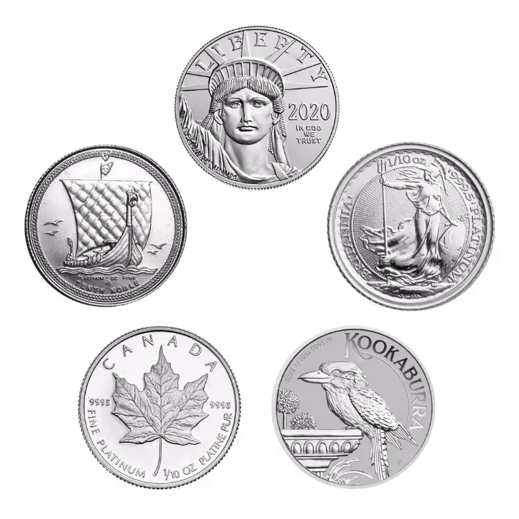 The 1/10 troy ounce platinum coin offers investors the opportunity to invest in physical platinum with a relatively small amount. This coin contains exactly one-tenth of a troy ounce (3.11 grams) of platinum with a purity of 99.95%. We supply various platinum coins; it is not known in advance which coin you will receive.