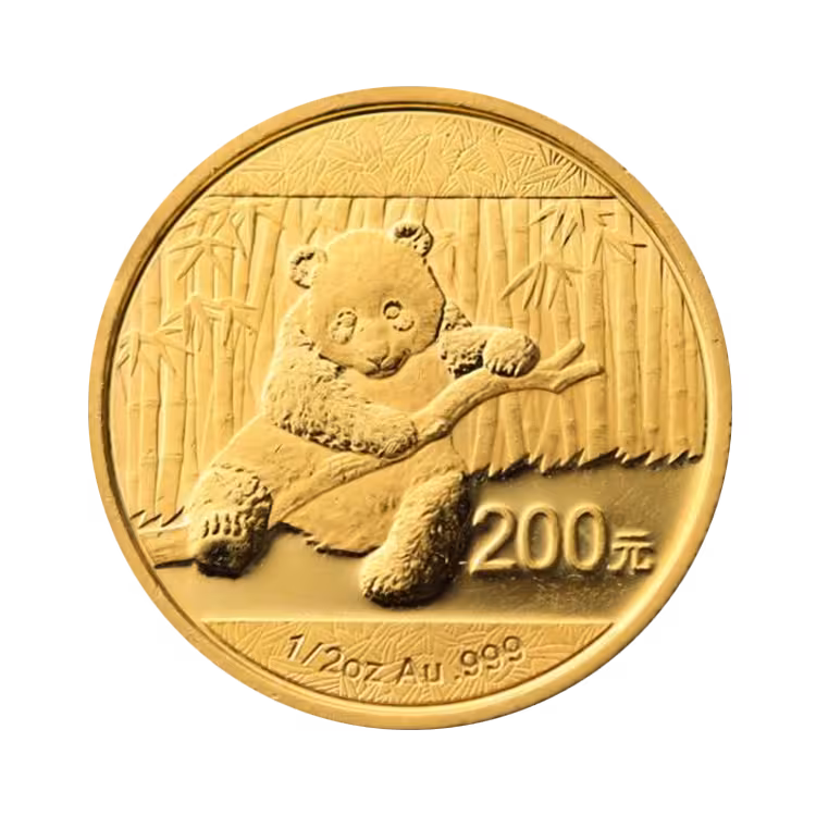 The 1/2 troy ounce gold Panda coin is issued by the prestigious China Gold Coin Corporation and is very popular worldwide. With a weight of 15.551 grams of pure gold (99.9%), this coin is not only a solid investment, but also a popular item among collectors. Each year, the coin is provided with a new design with a unique image of the iconic panda, which adds to the fun of collecting and investing.