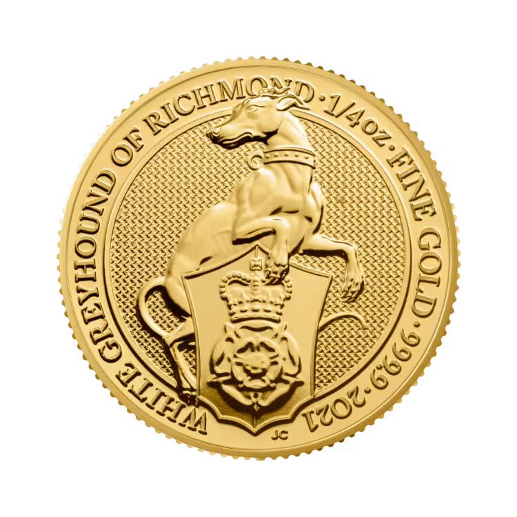 Image is for reference, we supply several vintages of the 1/4 troy ounce gold Queen's Beasts series.