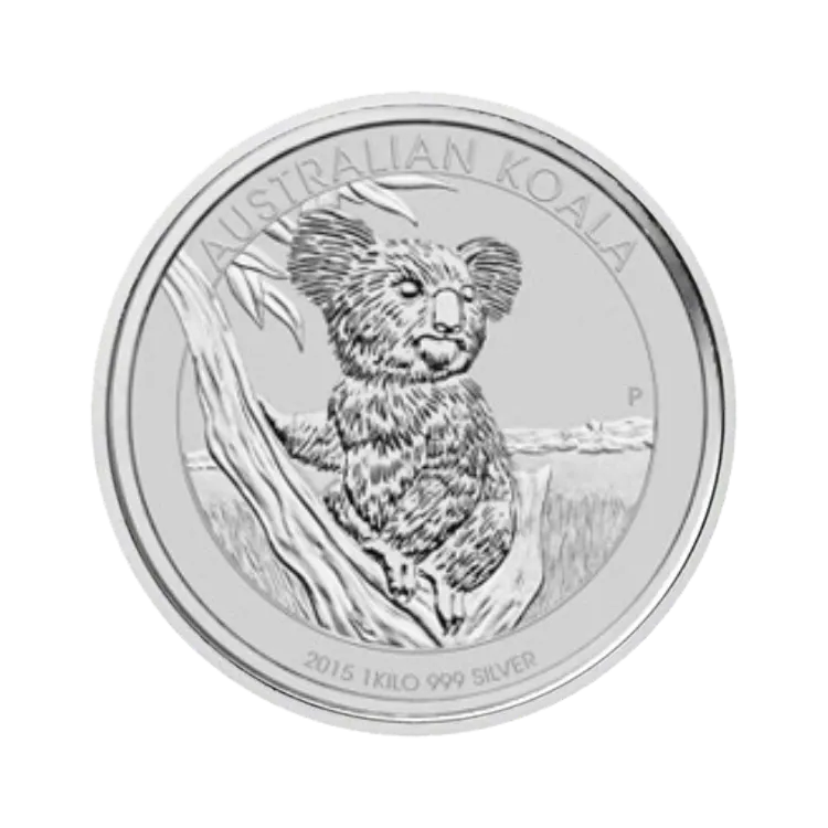 1 kilo silver Koala coin from 2015, made of pure silver (99.9%). An impressive investment coin, minted by the prestigious Perth Mint in Australia.