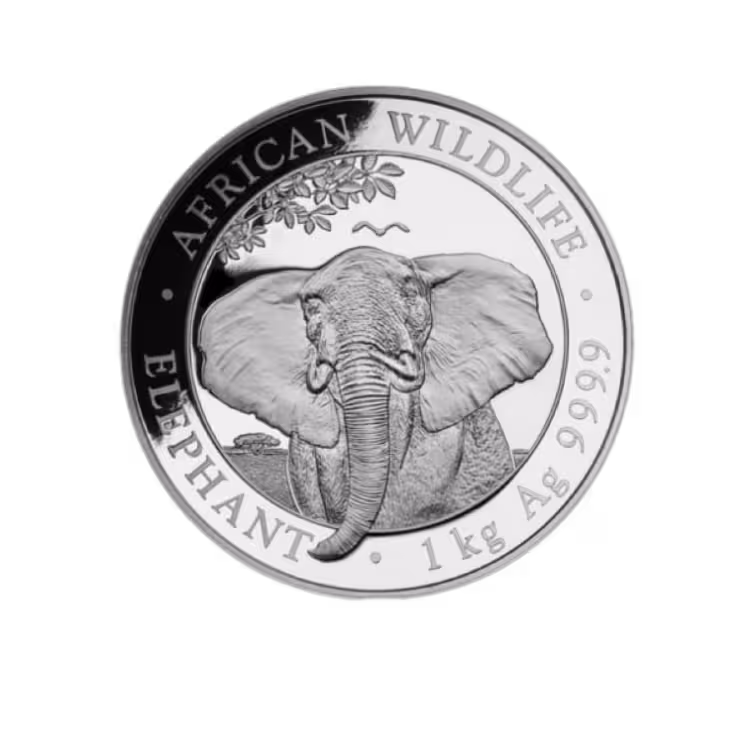 The Somali 1 kilogram silver Elephant is a silver coin minted in 1 kilogram pure silver (99.99%).