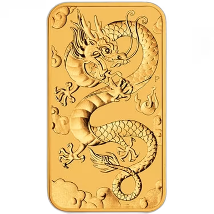 1 Troy ounce gold coin bar Rectangular Dragon 2019 - unique gold coin bar struck by the Perth Mint.
