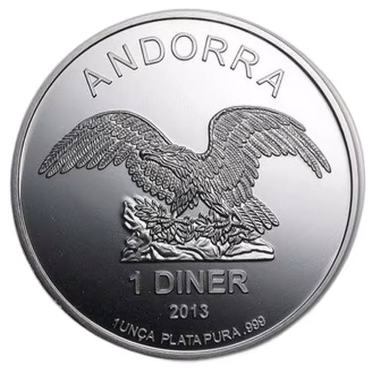 Limited available: 1 troy ounce silver Andorra Eagle coins. These coins contain 1 troy ounce fine silver (99.9%) each. Andorra Eagle coins are legal tender in Andorra.
