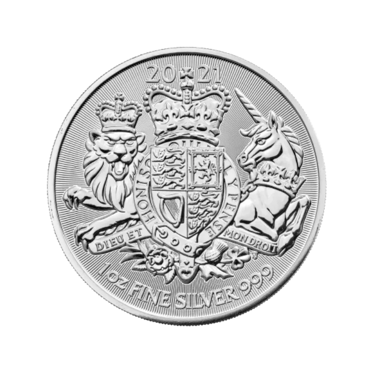 1 Troy ounce silver coin Royal Arms 2021 - struck in 99.9% fine silver.