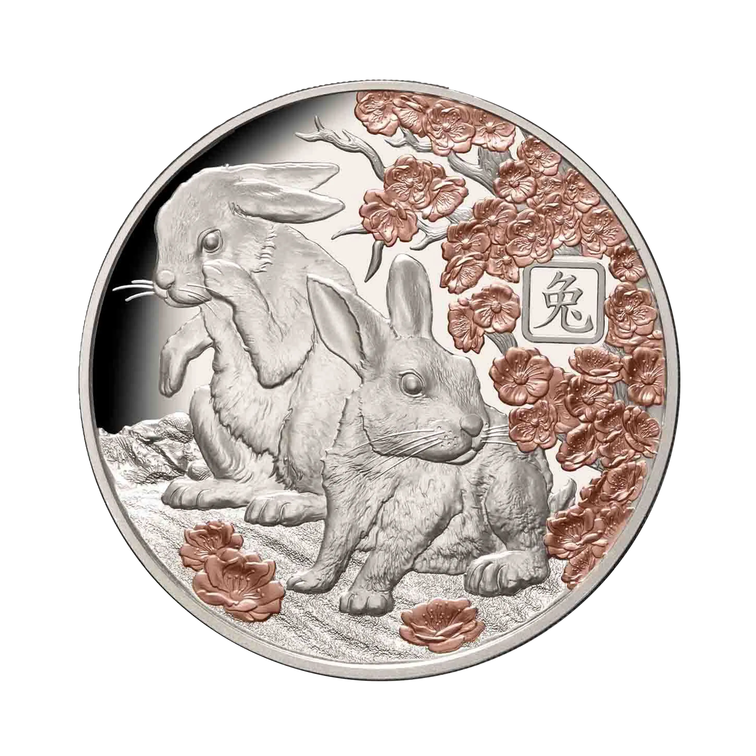 This beautiful 1 troy ounce silver coin from the Solomon Islands is based on the Chinese Lunar calendar. The 2023 design is therefore dominated by the rabbit. This silver collectible coin is struck in proof quality and contains 99.9% pure silver.