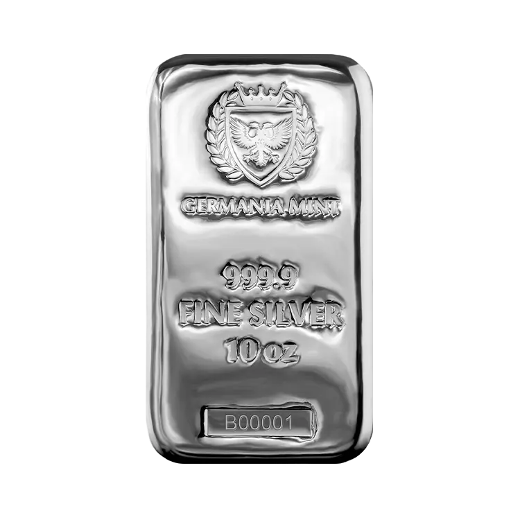 This 10 troy ounce silver bar offers an accessible way to purchase physical silver. The bar comes from various reputable producers and is delivered without specific certification. Ideal for investors who want to invest flexibly in silver.