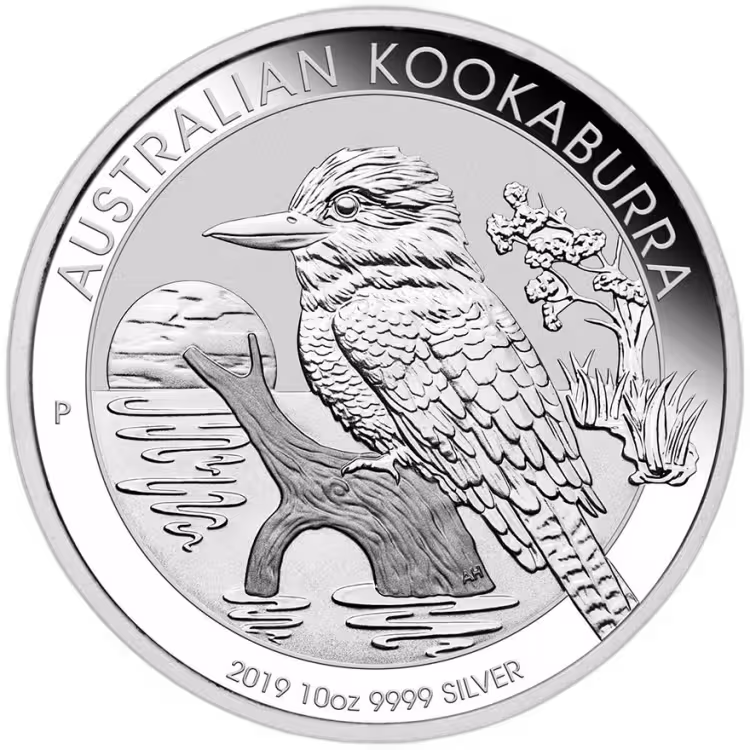 10 Troy ounce silver coin Kookaburra 2019 - issued by the Perth Mint from Australia in 99.99% fine silver.