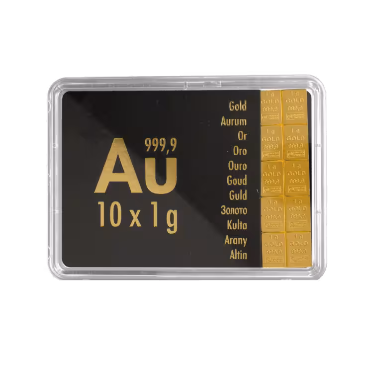 - Combibar with 10 individually breakable gold bars of 1 gram