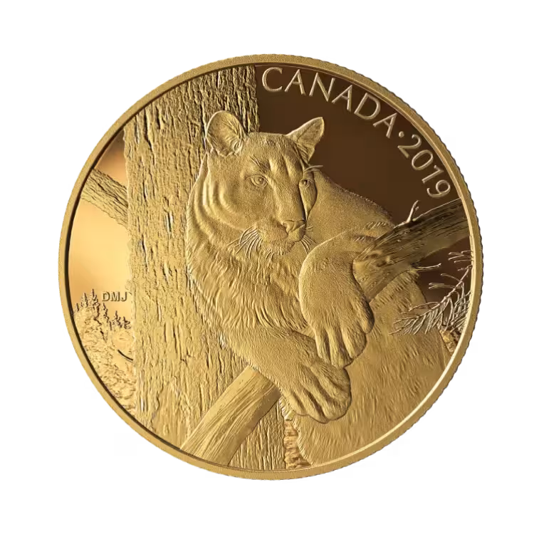 The Canadian Cougar 2019 is the first issue in the Canadian Wildlife Portraits series by the Royal Canadian Mint. Struck in 35 grams of 99.999% pure gold in Proof quality, this coin has an extremely limited mintage of only 400 pieces worldwide. Delivered in the original box with certificate of authenticity.