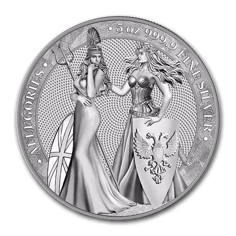 5 Troy ounce zilveren munt Germania Allegories 2019. Uitgave van de Germania Mint.