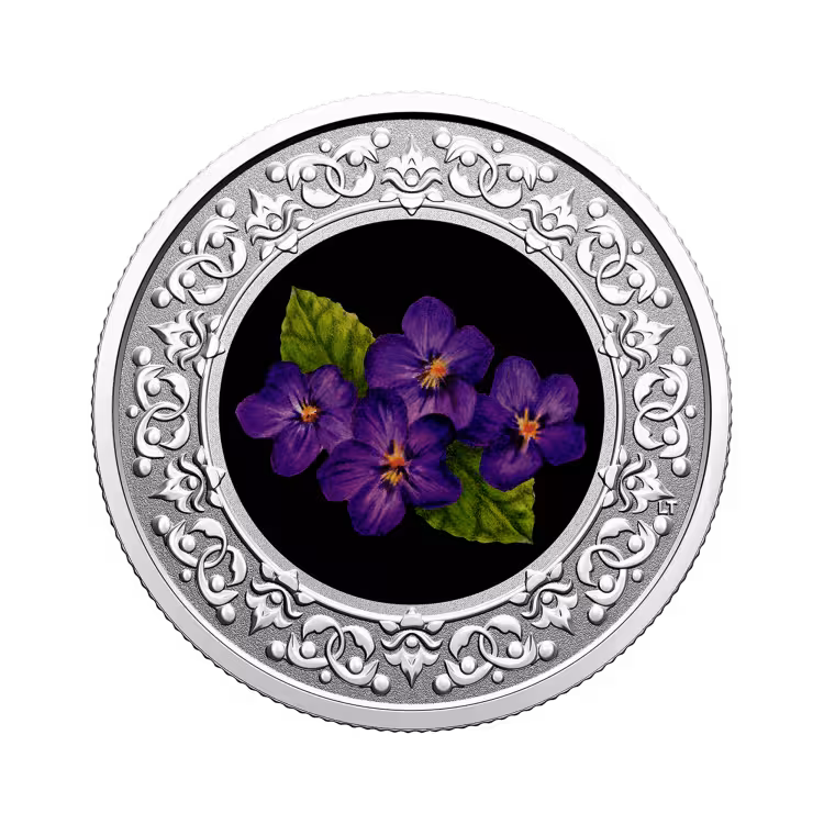 The silver coin Flower Emblems of Canada Purple Violet coin weighs 7.96 grams and is made of pure silver (99.9%). The coin has a circulation of 4.000 pieces.