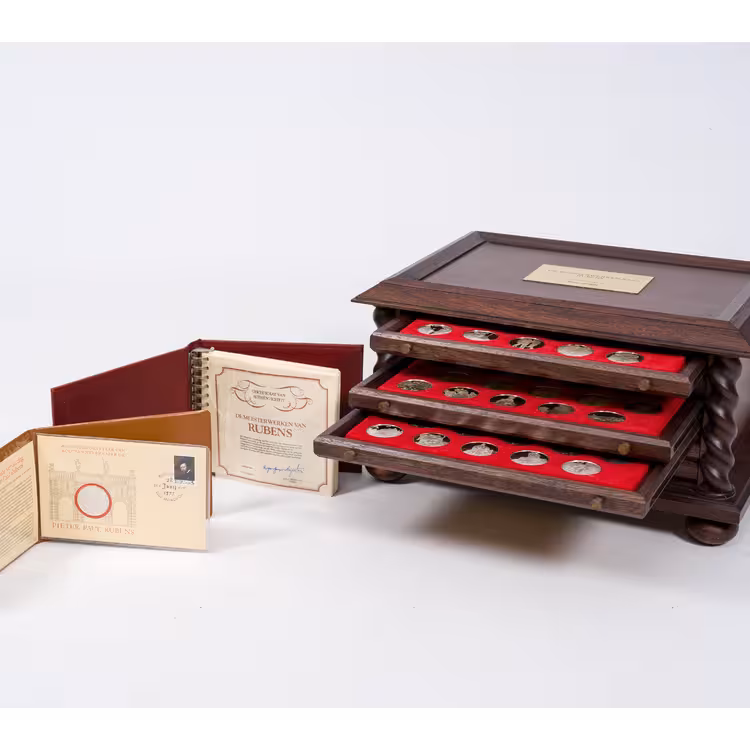 Franklin Mint – The Masterpieces of Rubens is an exclusive collection of 100 silver coins, each weighing 1 troy ounce (31.1 grams) and having a purity of 925/000. The set comes in its original box and includes some accompanying documents. A unique collecting opportunity for art and precious metal enthusiasts. This collection is relatively easy to obtain at a reasonable premium above the spot price.