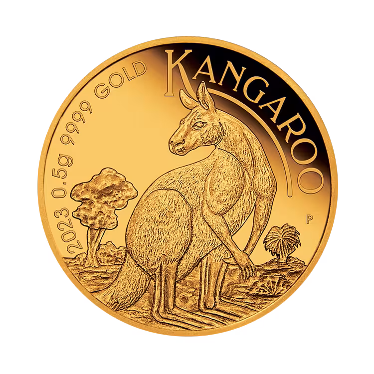 De munt is geslagen door de Perth Mint (Australië), komt uit 2023, heeft een gewicht van 0,5 gram puur goud (99,99%) en een nominale waarde in het land van herkomst van 2 dollar. De kangoeroe is het meest erkende dierensymbool van Australië. Sinds 1860 wordt het met regelmaat afgebeeld op Australische munten, penningen en medaillons. Sinds 1989 begon The Perth Mint met het maken van uitstekende gouden munten met jaarlijkse ontwerpen van het beroemde buideldier.