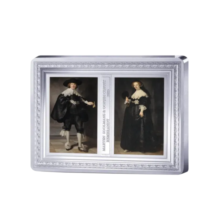 In 2025 presenteert Monnaie de Paris een uitzonderlijke numismatische uitgifte ter ere van Rembrandt van Rijn, een van de grootste meesters uit de Nederlandse schilderkunst. Centraal staan de beroemde levensgrote portretten van Marten Soolmans en Oopjen Coppit, geschilderd in 1634 en sinds 2016 gezamenlijk eigendom van het Louvre Museum en het Rijksmuseum.