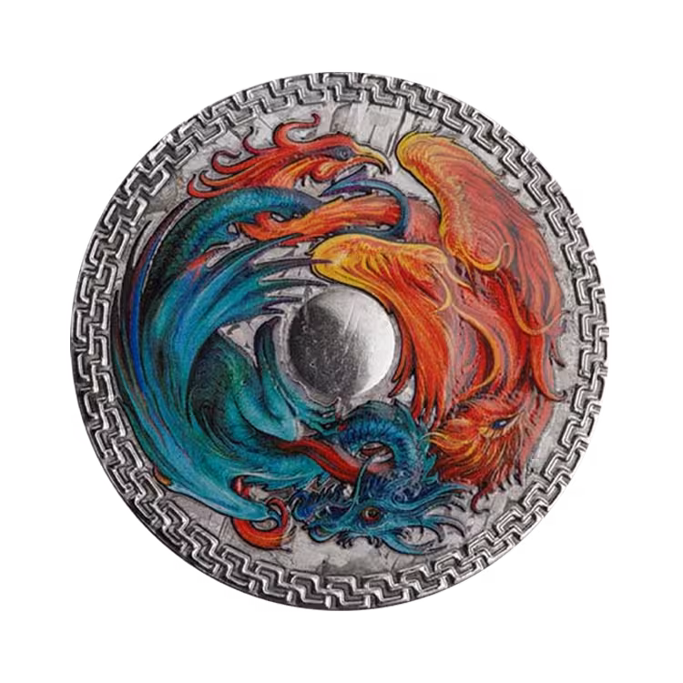 De Phoenix en Draak munt is een numismatische weergave van de 'Yin-Yang' balans voor (huwelijks)geluk. De draak is een wezen van kracht en strengheid terwijl de Phoenix een zachtaardige en vredige vogel is. Samen symboliseren ze de complementatie en balans in een liefdesrelatie. Het is gemaakt van pure meteoriet, hierdoor is het een zeldzame munt die een oud liefdesfenomeen aanduidt dat vandaag de dag nog steeds relevant is.